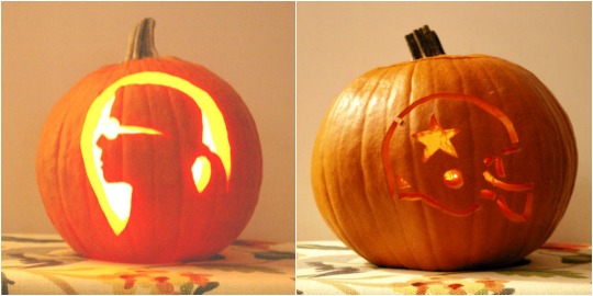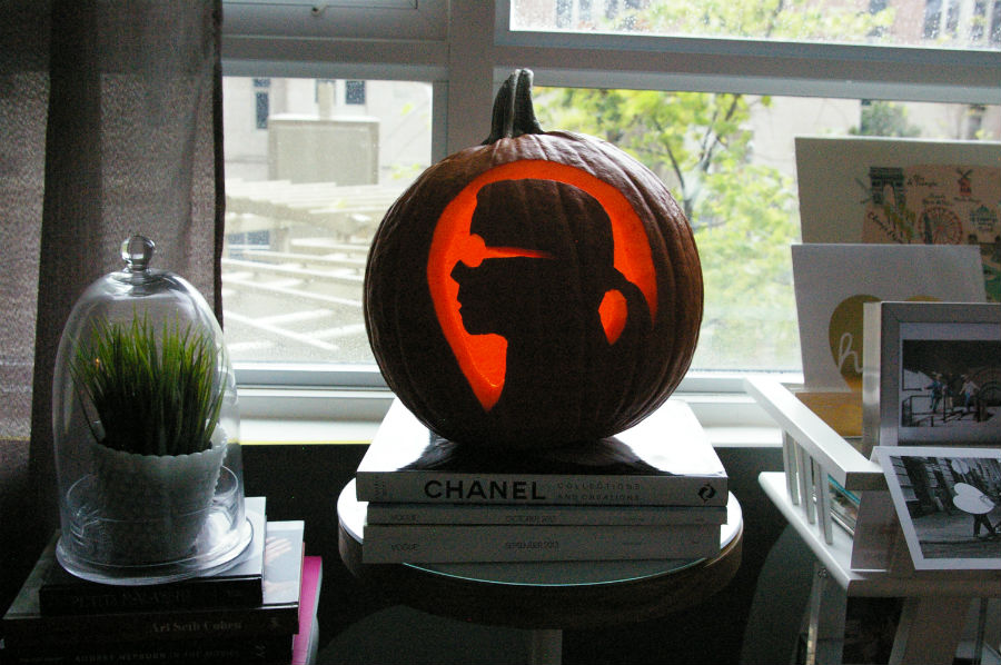 I can’t recall the last time I carved a pumpkin. Equipped with photo inspirations and my $2 pumpkin carving knife and scooper, I assembled an army of tools from both my baking and sewing/pattern making boxes. I figured I may as well cover myself for all scenarios. Once I overcame the the initial pumpkin guts grossness, I got into a carving groove. I am more than pleased with my results; especially with my Karl Lagerfeld-o-lantern! A pumpkin ponytail never looked so chic.