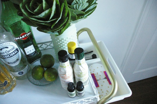 [3] accessorize -my first addition was this decorative tray | it was originally red and I spray painted it with a glossy white | I couldn’t be more pleased with its subtle shine and geometric shape that both add an extra decorative flare to the this conventional cart