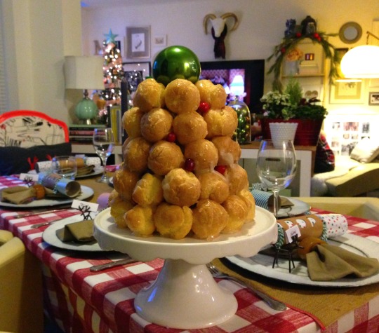 [This was my 2nd attempt at a croquembouche. The puffs turned out great but my sugar work needs work | more on this soon!]
