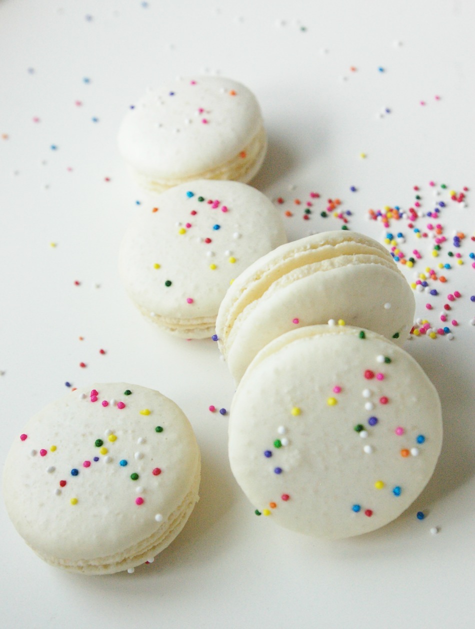 Since starting an Instagram account for my macaron creations + inspirations [@memoirs_of_a_macaron] I have been scrolling through more cake + baking pics than ever. In the last 5 weeks I have seen perfectly pipped + flocked sugar cookies, colourful creative macarons, and show-stopping cakes. Though the cookies are impressive, the cakes take the cake. Perhaps one day with enough baking courage, I will switch from macarons to cakes, but until then, I’ve decided to ring in July with birthday cake macarons.