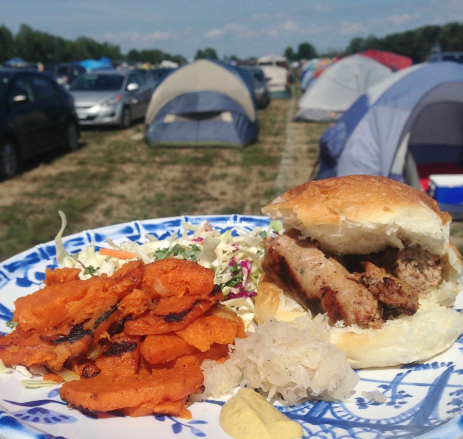 C A M P S I T E E A T S | Sannigan’s sausage in Blackbird Baking Co. buns + coleslaw + sweet potatoes + saurkraut