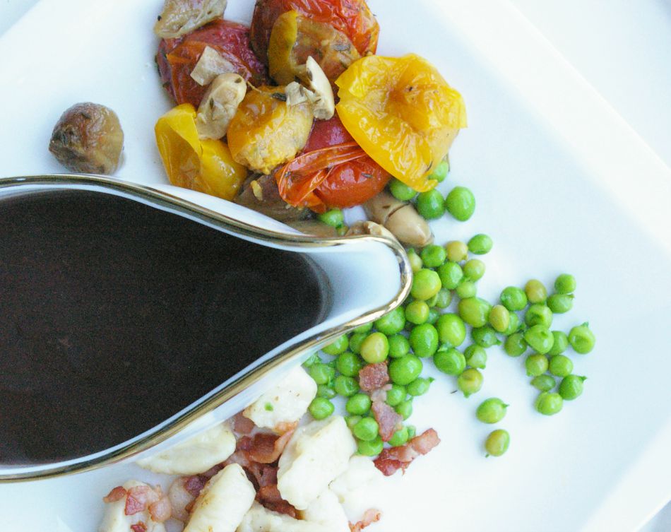 Carve the chicken, spoon on the sides, pour on the gravy, and enjoy!